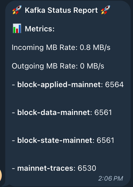 Since TON creates quite a heavy load at peak and blocks weigh a lot, it is important that Kafka does not lose any messages and allows large blocks & transactions to pass through. And the pods themselves were configured correctly in terms of resources (pod resources & jvmOptions) to handle large messages correctly.